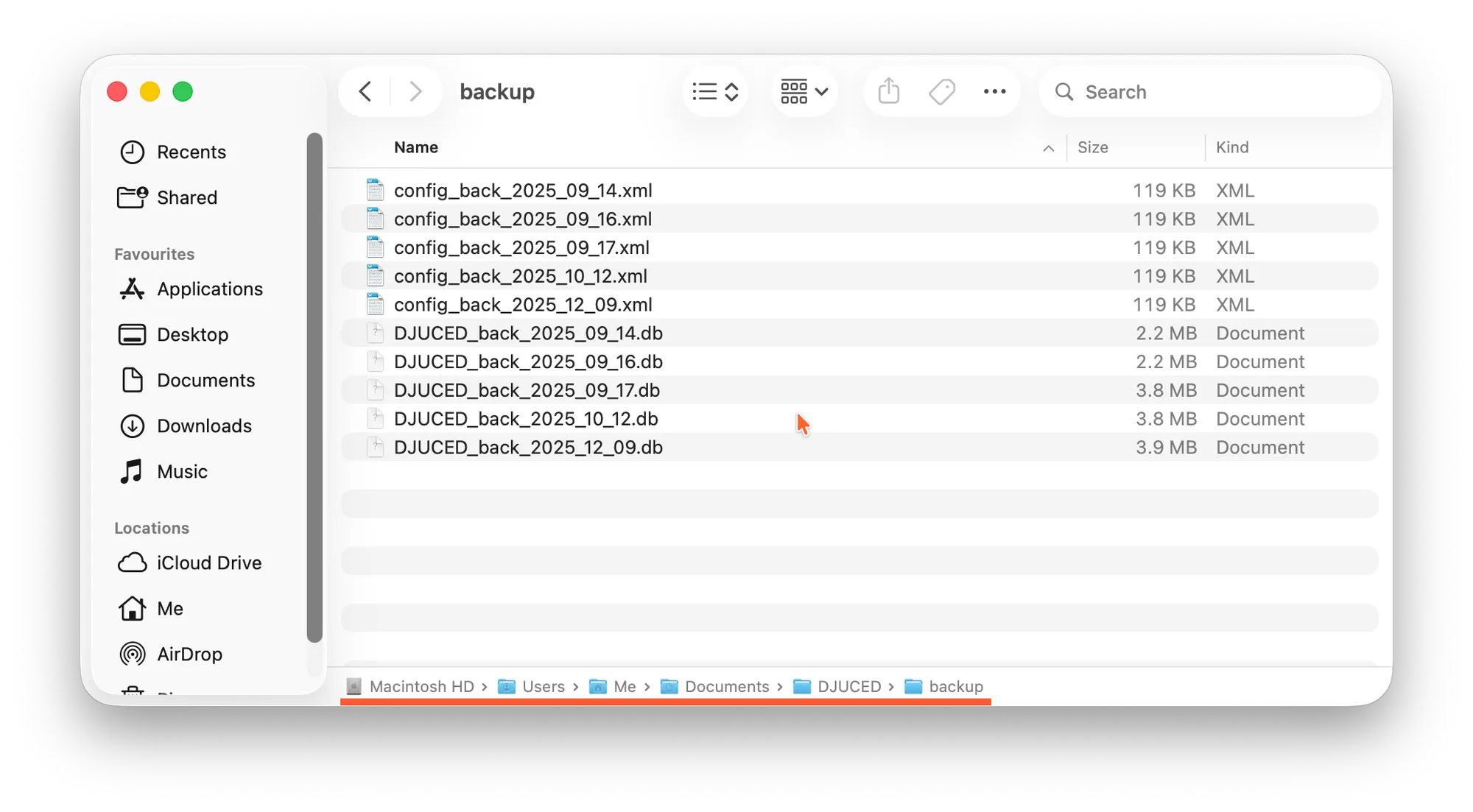 2. Navigate to the Backup Folder: Go to Users -> UserName -> Documents -> DJUCED -> backup on your local drive.