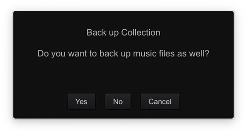 - Include music files - slower; creates a full copy of every audio file in your library (recommended if you are moving to a new computer).