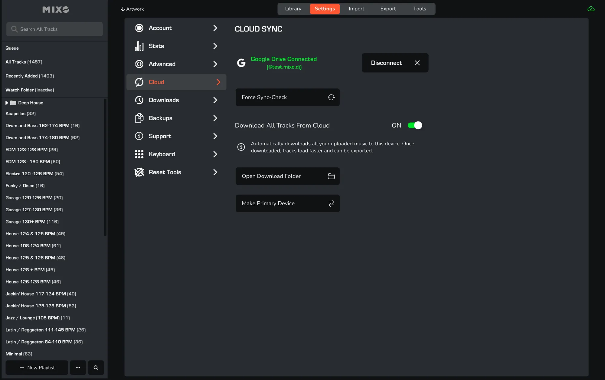 Once signed in, your Google Drive will be connected to MIXO and your tracks will automatically start uploading to your cloud.