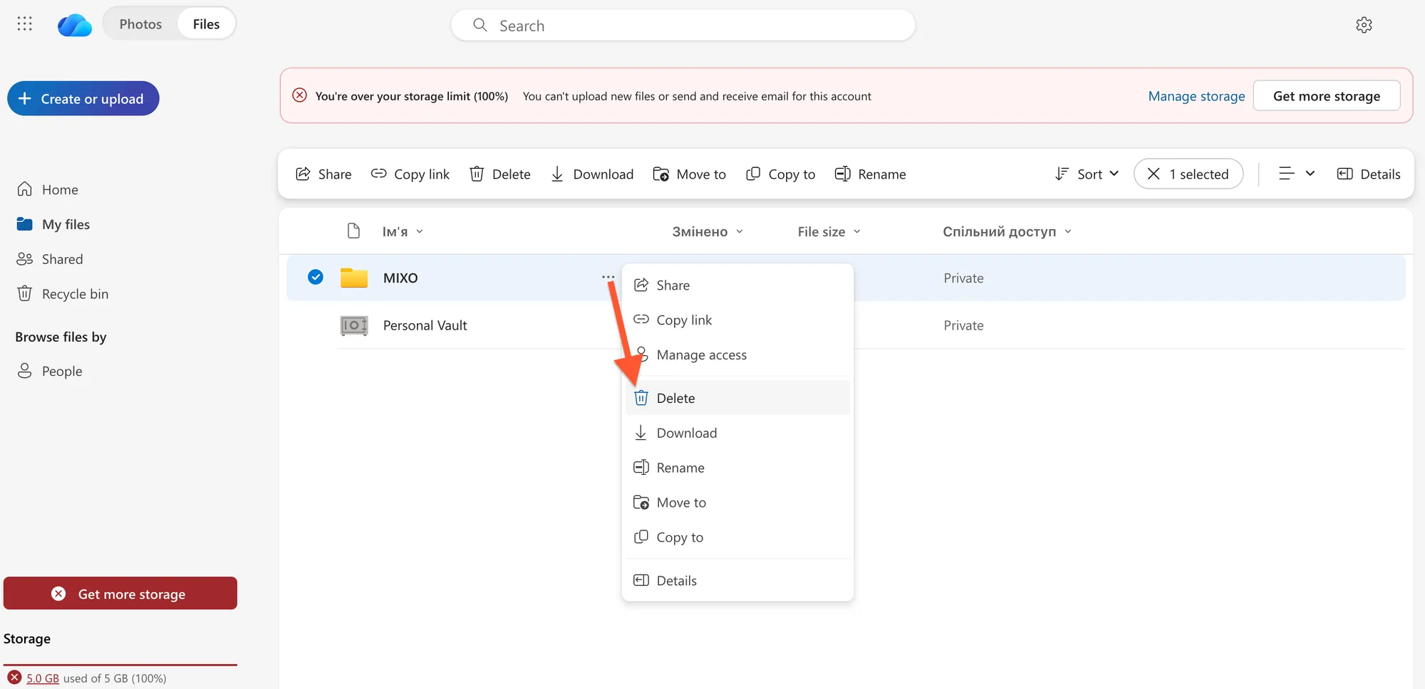 DELETE THE MIXO FOLDER IN ONEDRIVE