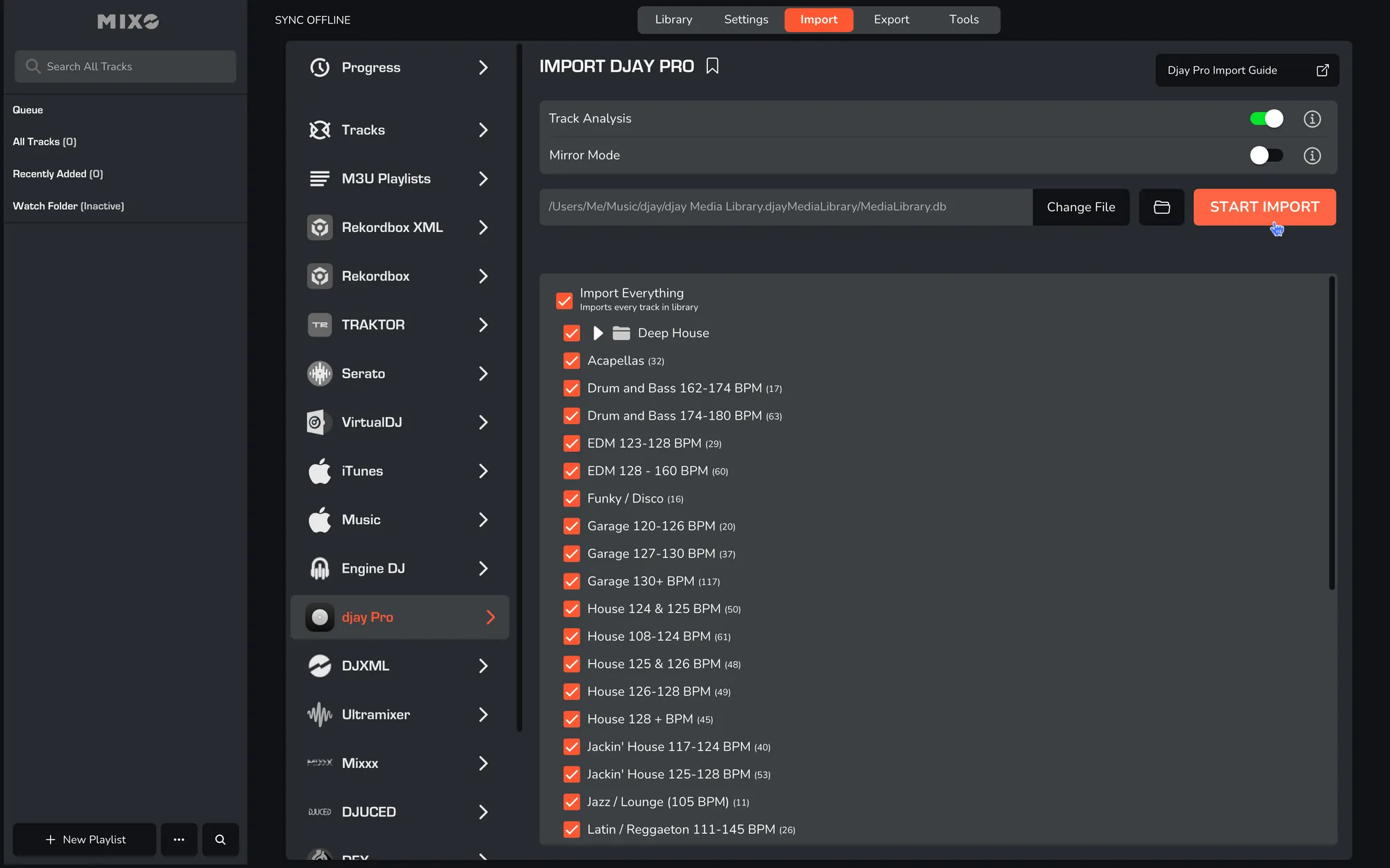 - MIXO should automatically locate your DJAY PRO library. If it does not, use the 'Change File' option to manually select the database file.