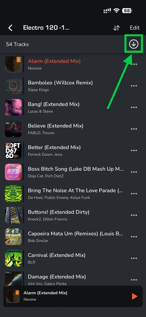 3. An orange indicator will appear next to the playlist name once the download is complete.