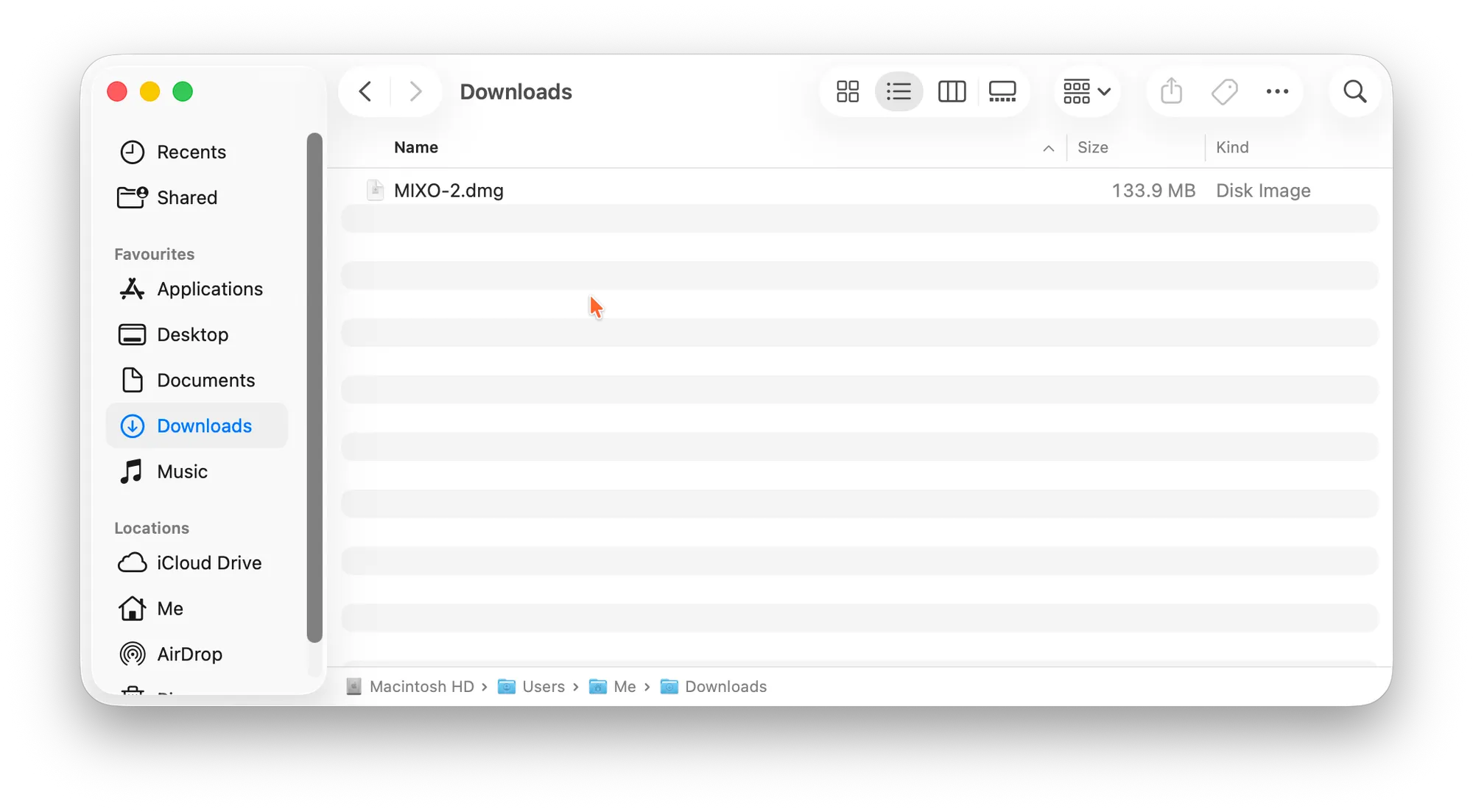 2. Navigate to your downloads folder in Finder and run the MIXO dmg file.