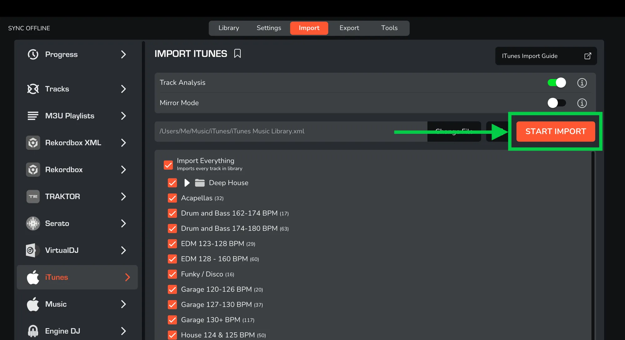 MIXO will analyze the XML file, automatically update any existing tracks and playlists, and import anything that is new to your library.