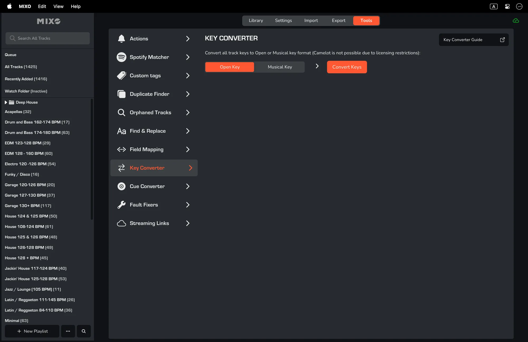The MIXO Key Converter simply converts all track keys from one format to another.