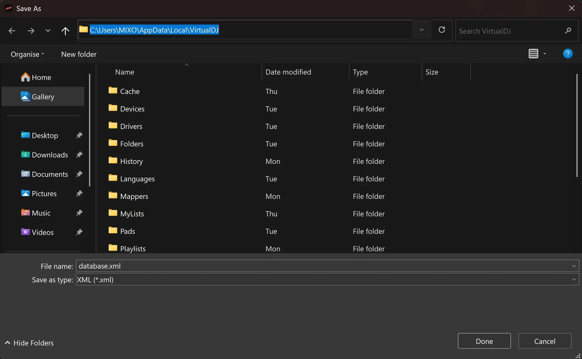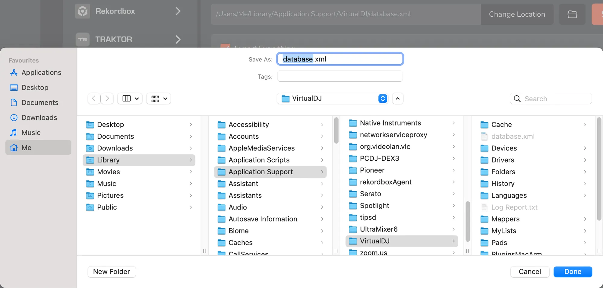 - Set the path to: Users -> [your-user] -> Library -> Application Support -> VirtualDJ