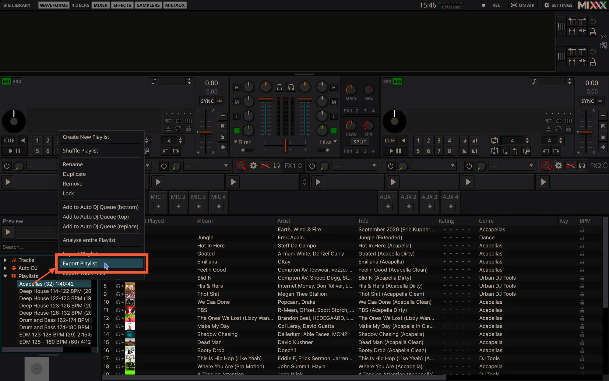 MIXXX exports playlists individually. Repeat these steps for every playlist you want to transfer.