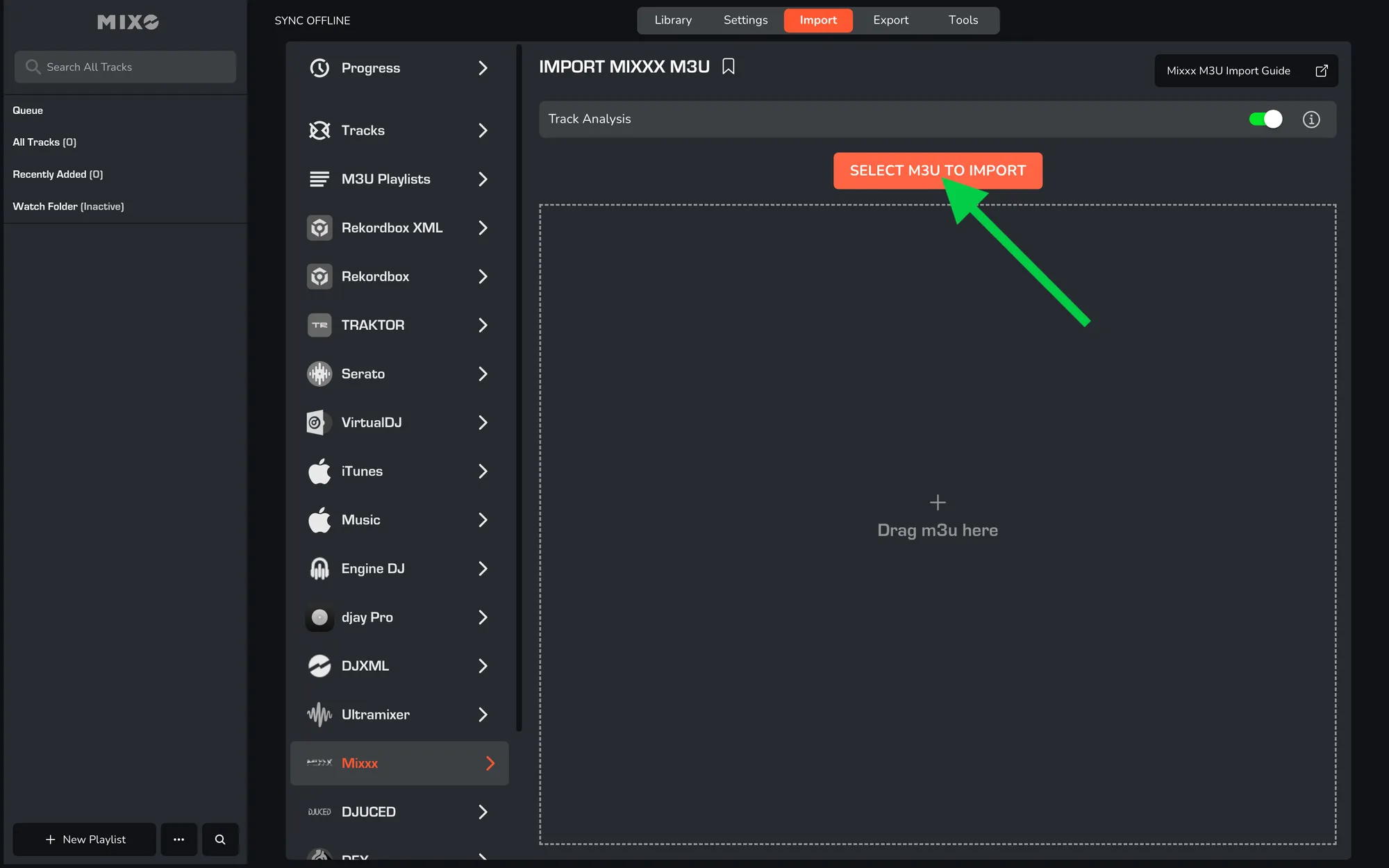 MIXO will process the M3U files, import your tracks and playlists, and analyze the tracks (if analysis is enabled).