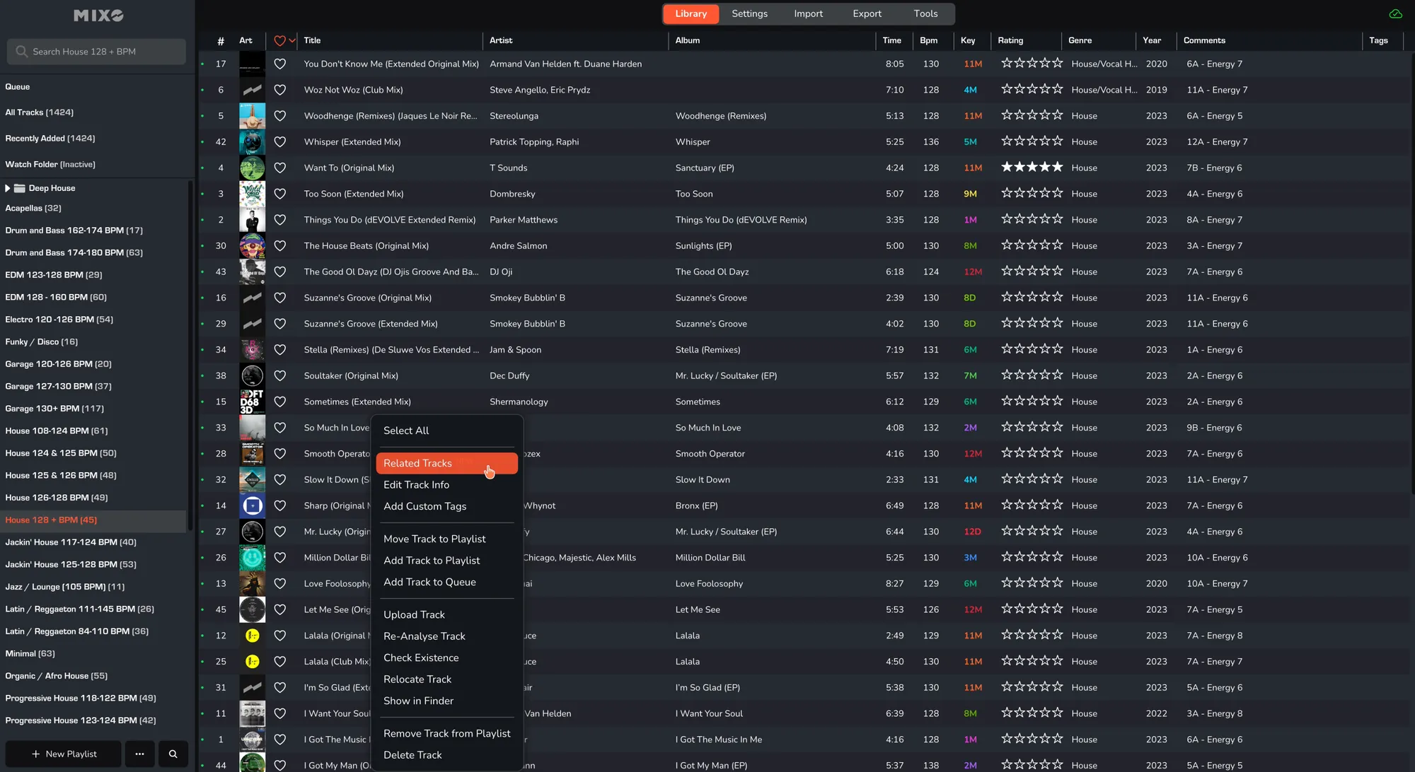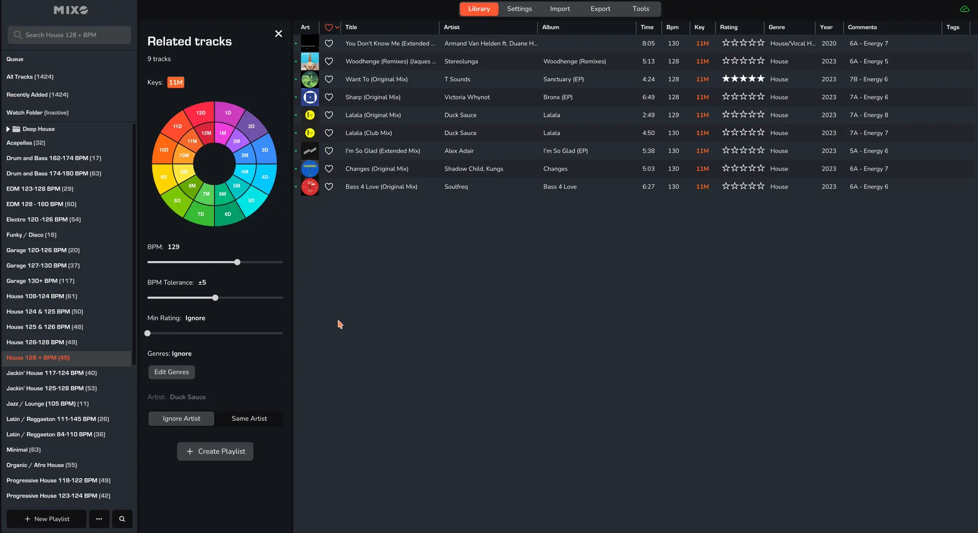 The tool analyzes our currently selected track and finds compatible music based on specific criteria: BPM and Key.