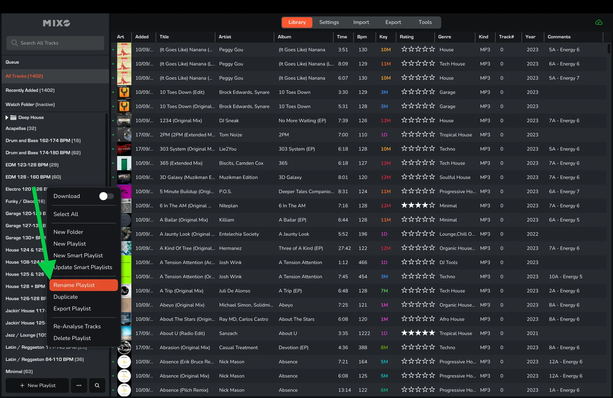 To rename a playlist in your MIXO library: