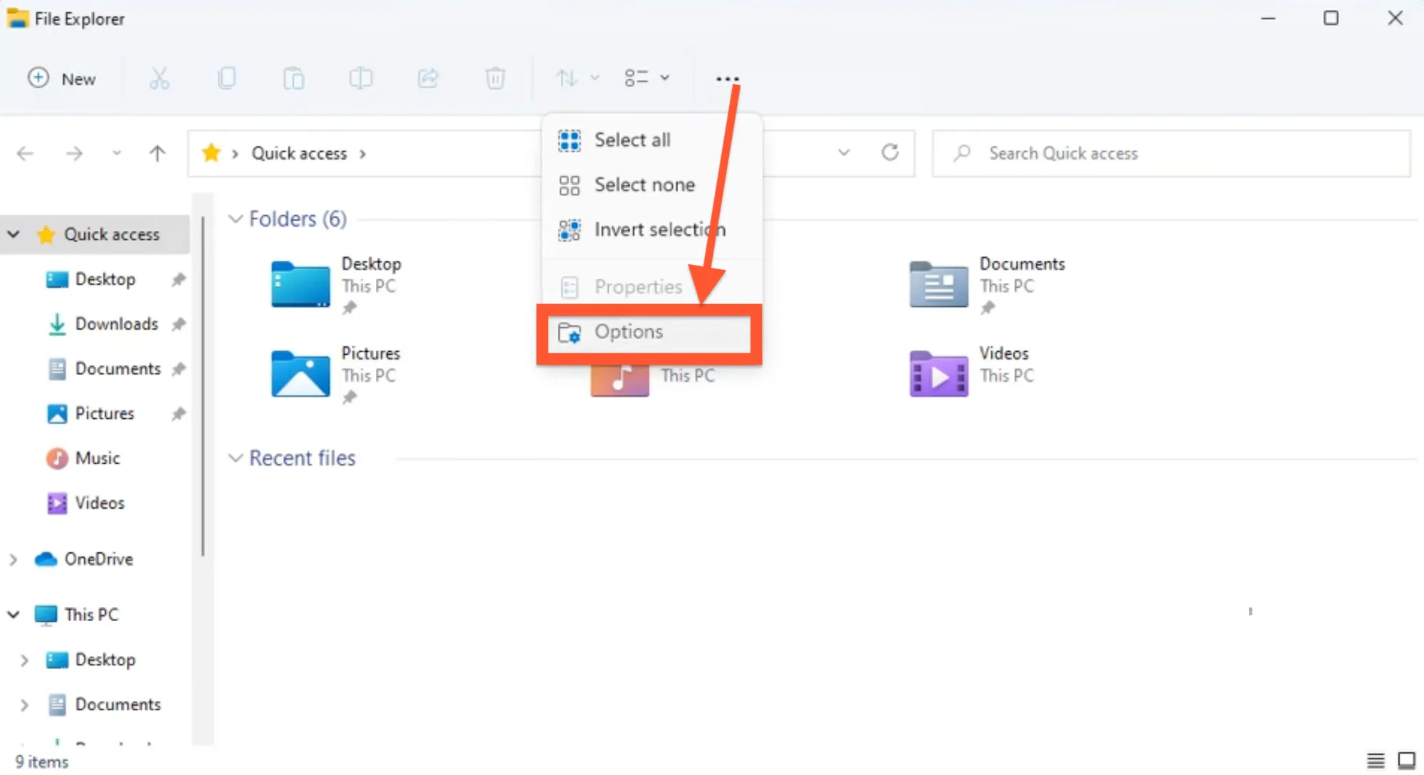 2. Under the ‘View’ tab, select ‘Options’.