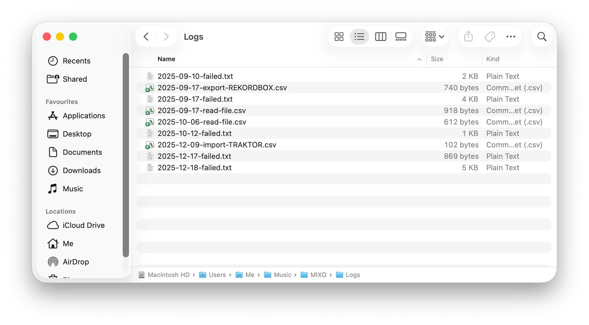 You can then email these files to us at team@mixo.dj, should you encounter any issues.