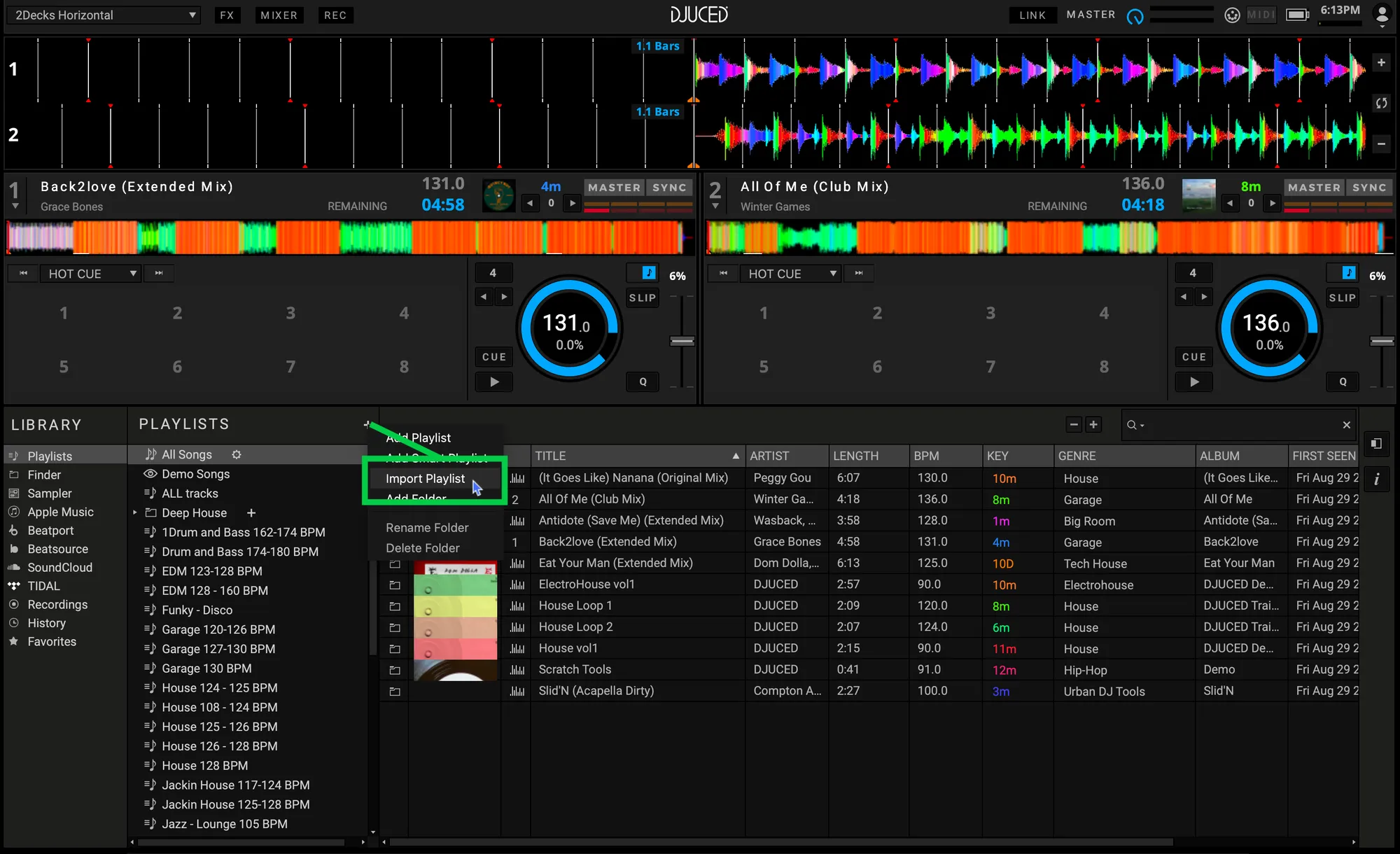 Note: Be aware, DJUCED does not import beat grids & cue points from MIXO.